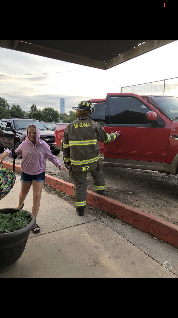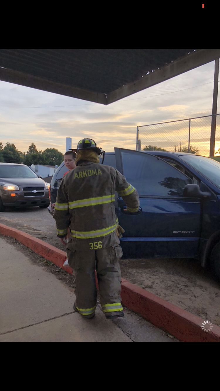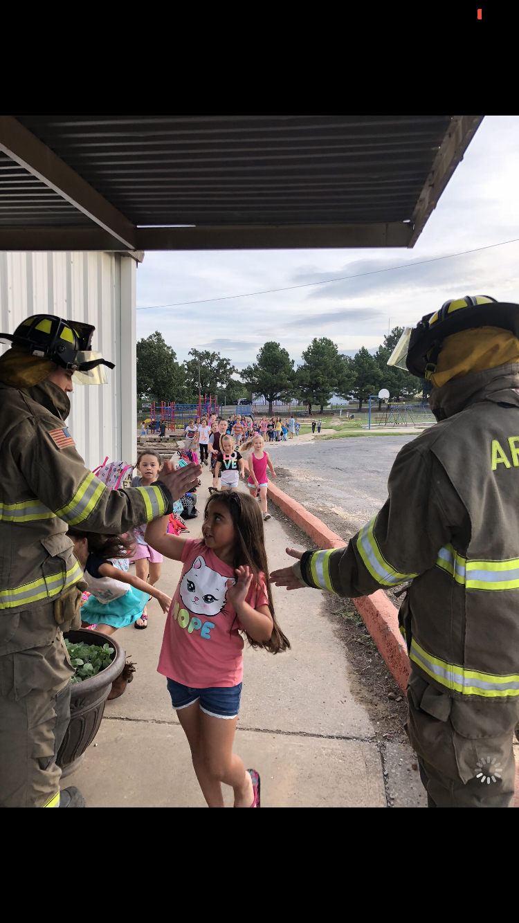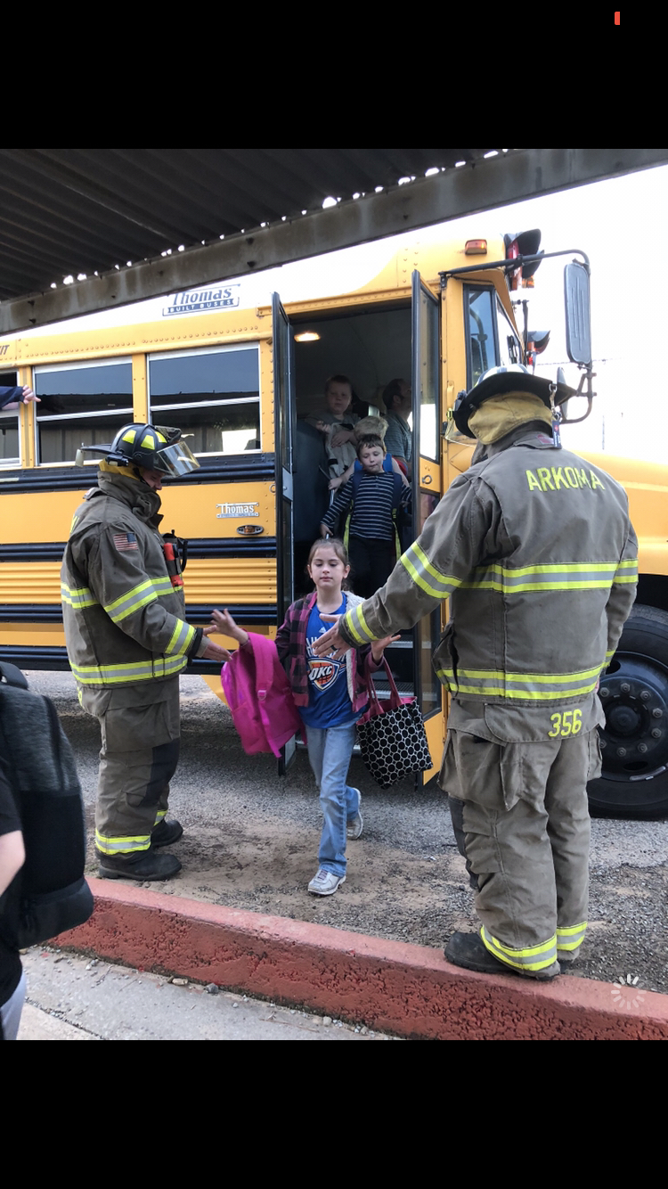 The Arkoma Volunteer Fire Department greeted students this morning at the elementary school to start Fire Prevention Week. During the week, fire department members will visit classrooms and talk about safety and fire prevention with students. There is also a fire prevention poster contest that students are encouraged to participate in. Thank you to all of our Volunteers at the Arkoma Fire Department!